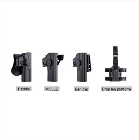 - Standart, kemer klipsi, MOLLE ve bacak platformu olarak.
